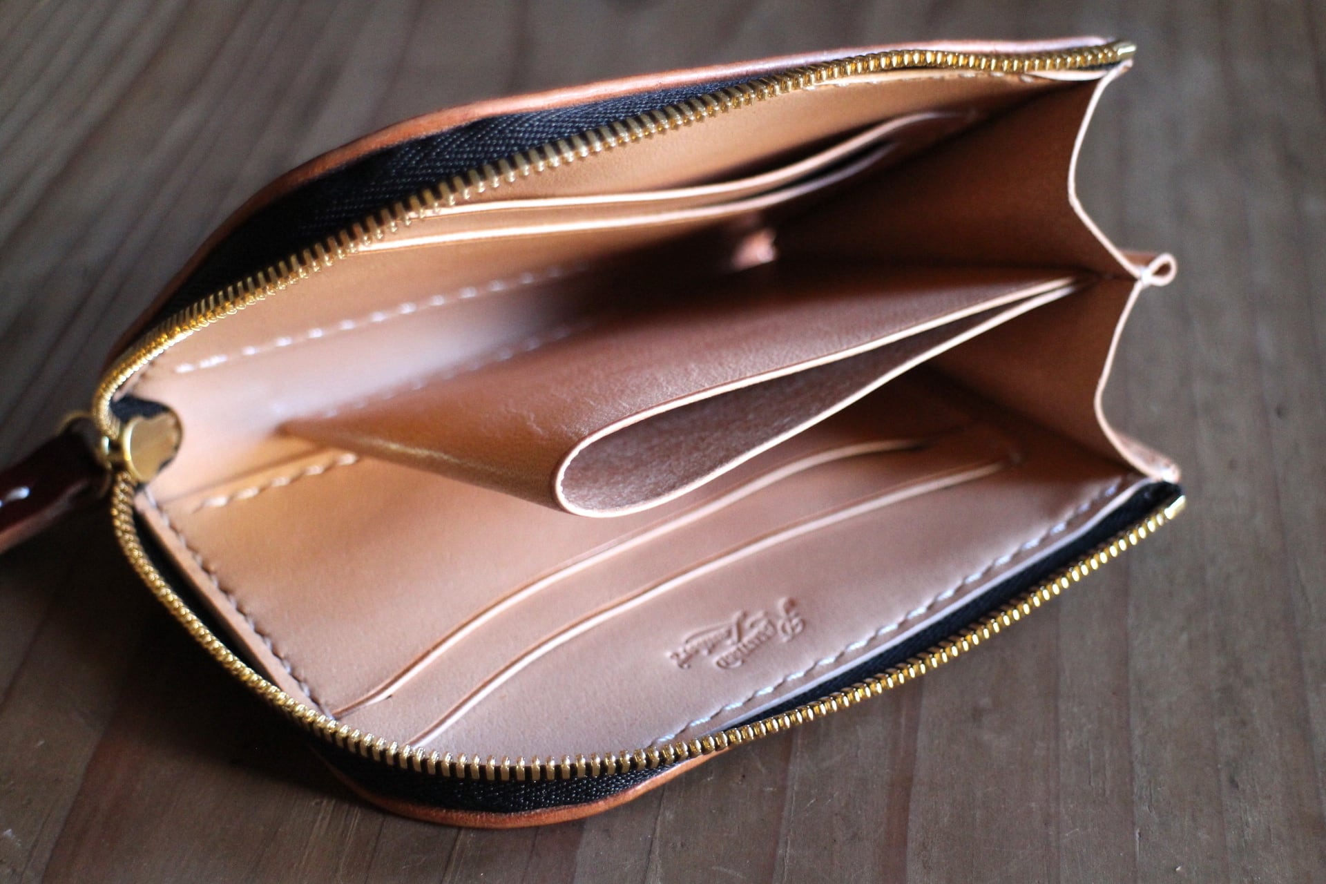 コバは無染色、磨きを繰り返し仕上げにはオリジナル蜜蝋仕上げ